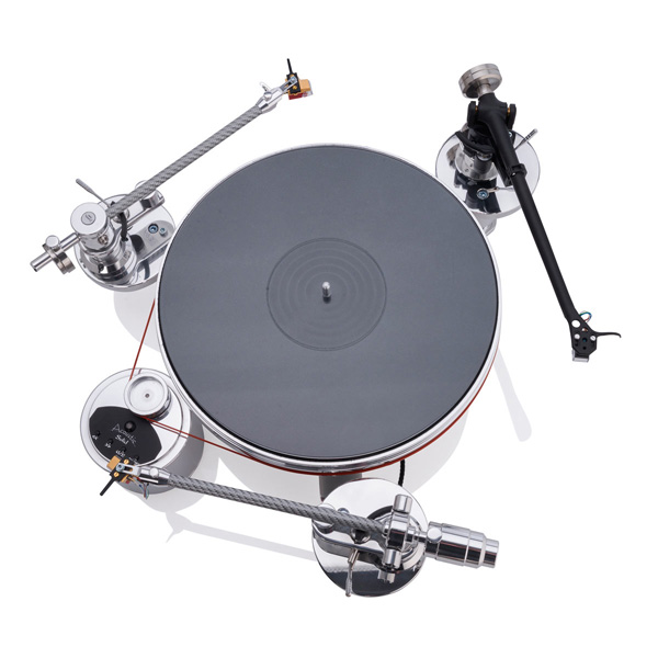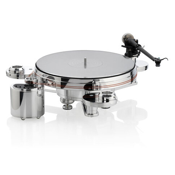 Модель, которую вы видите на фото, эксклюзивная, созданная немецкими конструкторами для любителей винила с особыми запросами. В этом контексте отметим две особенности: чрезвычайно толстый плинт, набранный из многослойной фанеры, и внешнюю отделку, предусматривающую несколько цветовых вариантов. В нашем случае это классический British Racing Green....