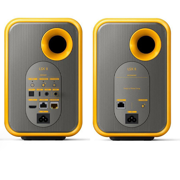 Каждый аспект KEF LSX II тщательно продуман, с элегантной задней панелью управления и тонкими дизайнерскими акцентами, такими как подобранная по цвету отделка драйвера Uni-Q и портов. Он доступен в семи вариантах отделки: матовый атласный Mineral White и глянцевый Lava Red, а также Carbon Black, Cobalt Blue, Olive Green, Solaris Yellow и Soundwave от Terence Conran Edition, обтянутые тканью, специально разработанной датским дизайнером по текстилю Kvadrat.