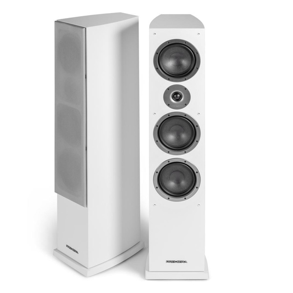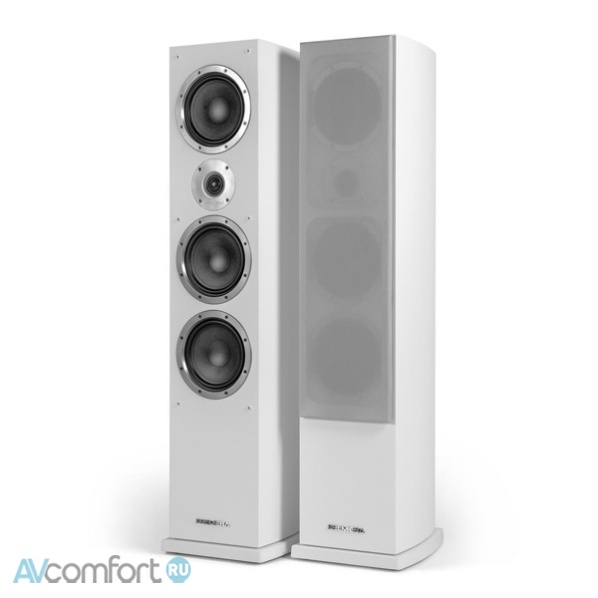 Четыре динамика – 1-дюймовый ВЧ-динамик с шелковым куполом и три (один среднечастотный и два низкочастотных) 6,5-дюймовых с диффузорами из длинноволокнистого материала на целлюлозной основе – делают возможным высококачественное воспроизведение любого аудиоматериала в диапазоне частот от 30 Гц до 38 кГц. Динамики защищены тканевой решеткой из черной или белой ткани на каркасе из MDF.