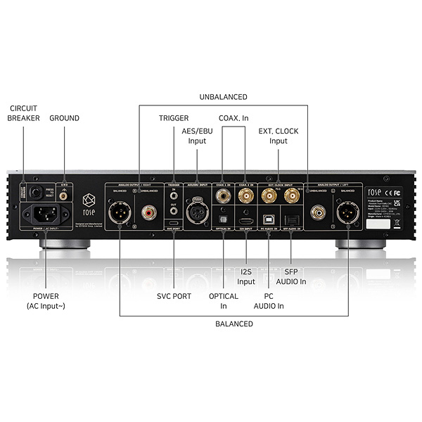 - конструкция «двойное моно», полностью симметричная (балансная) схема цифрового и аналогового аудиотракта
