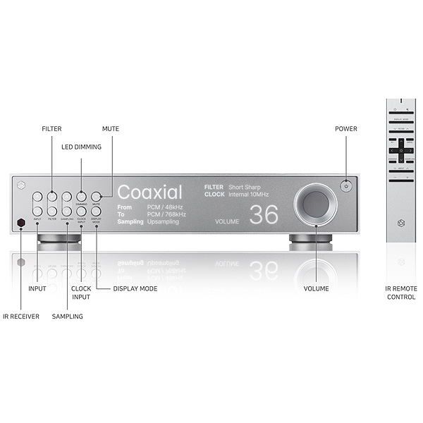 | Coaxial | 1 х S/PDIF (RCA), 1 х S/PDIF (BNC), 1 х AES/EBU (XLR), 2 х Clock (BNC 10 мГц) |
