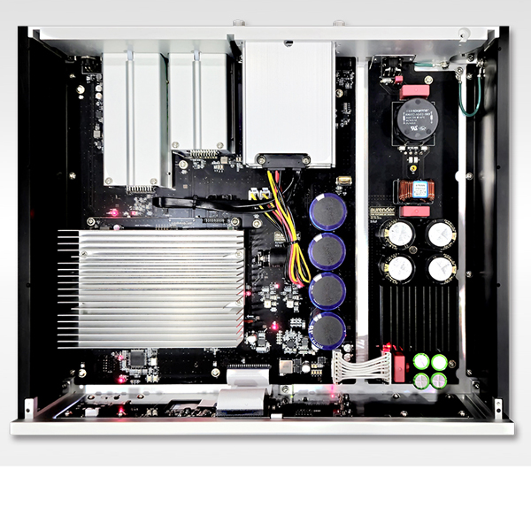 • Архитектура с тремя шасси (сервер / питание / аудио): за счет физического разделения критически важных функциональных блоков каждое шасси работает в полной изоляции, что значительно снижает внутренние помехи.