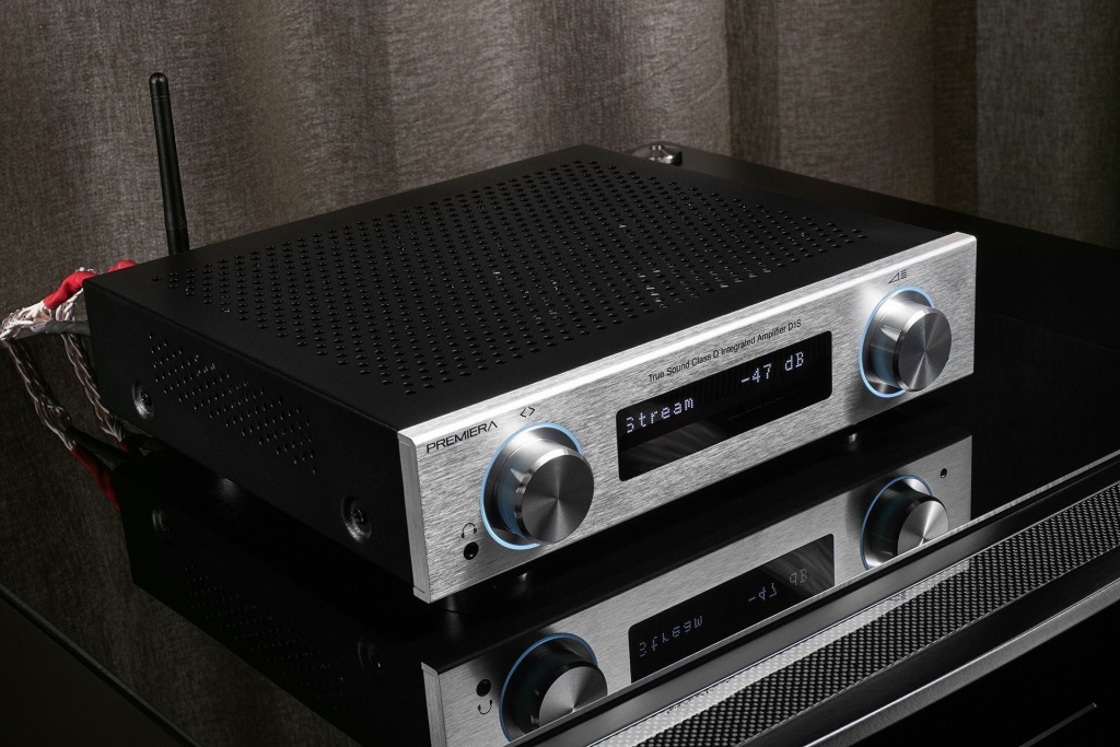 Premiera D1S – интегральный Hi-Fi стереоусилитель класса D со встроенными сетевым проигрывателем, ЦАП, Bluetooth aptX HD, HDMI ARC, USB, Wi-Fi, AirPlay 2, с номинальной выходной мощностью 101 Вт на канал (4 Ом), с возможностью подключения семи источников входного сигнала (два из них - аналоговые), и с тремя аналоговыми выходами – два стерео (регулируемым для внешнего усилителя и для наушников) и один моно (для активного сабвуфера).
