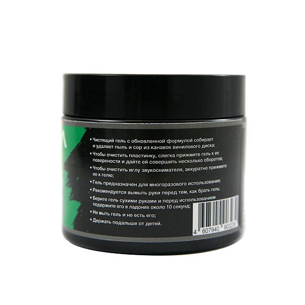 Для очистки пластинки достаточно слегка прижать гель к ее поверхности и позволить ему совершить несколько оборотов. "Волшебная формула" геля эффективно взаимодействует с пылью и микроскопическими частицами и другим сором, собирая их с поверхности пластинки. Мягкое воздействие геля позволяет бережно очистить дорожки пластинки без повреждения или истирания звуковых канавок.