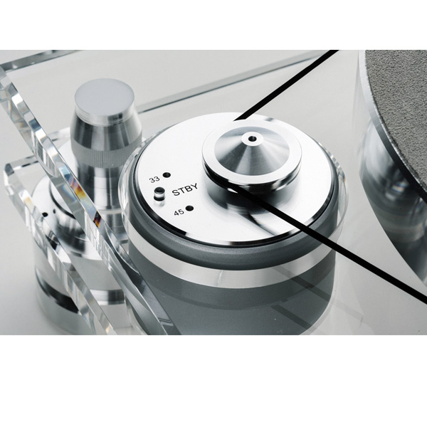 Двигатель установлен на специальной пене на нижнем уровне акрилового основания, чтобы отделить его от диска и тонарма. Электронное управление скоростью позволяет переключаться между 33 и 45 об/мин.