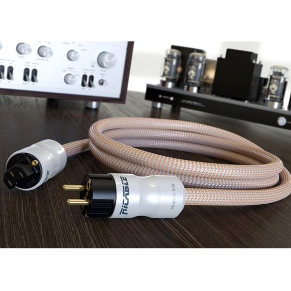 Геометрия Dedalus Power Elite скрученная, каждый отдельный проводник экранирован. Двойное экранирование завершается высокопокрывающей луженой медной оплеткой, покрывающей весь кабель, и введением RNR (Ricable Noise Reduction). Как известно, экранирование подобно антибиотикам, то есть оно дает пользу, но также создает противопоказания к сигналу. Благодаря всей работе, проделанной над новым Elite, нам удалось еще больше снизить электрическую емкость и лучше изолировать проводник, несущий электричество, от экранов, которые продолжают давать преимущества, но влияют на электрический сигнал гораздо меньше, чем стандартный Dedalus.