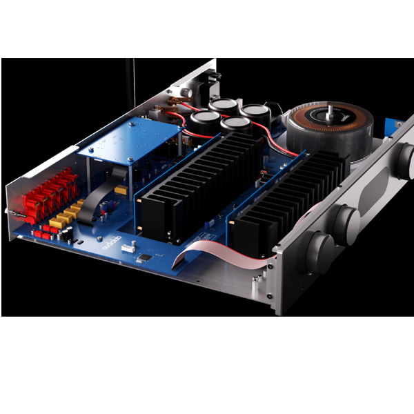 За мощным тороидальным трансформатором мощностью 200 ВА установлены четыре накопительных конденсатора по 15 000 мкФ в цепи питания усилителя мощности (30 000 мкФ на шину). Это помогает усилителю сохранять полный контроль над музыкой, обеспечивая при этом превосходный динамический диапазон.