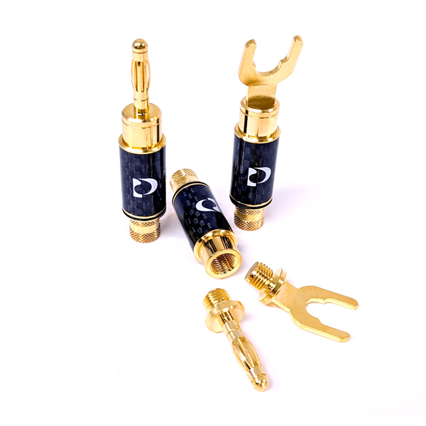 Эти акустические кабели производятся из четырёх проыодников с отдельным положительным и отрицательным кабелем для каждого канала. Акустические кабели Dominus стандартно поставляются со сменными разъёмами типа «лопатка»/«банан» от Purist. Это лучшие разъёмы на сегодняшний день! Они изготовлены из бериллиевой меди с серебряным и золотым покрытием.