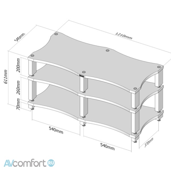 Самые сложные и продвинутые аудио- и AV-системы можно легко и с комфортом разместить в три ряда. Широкая верхняя полка идеально подойдет для размещения большого телевизора или серьезного винилового проигрывателя с выносным мотором. Найдется даже место для размещения ваших любимых виниловых пластинок или Blu-ray-дисков...