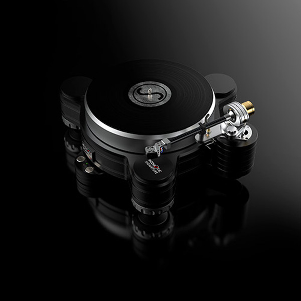 Диск, на котором лежит пластинка, является непосредственным проводником вибраций в головку звукоснимателя и с учетом того, что он опирается на подшипник, именно этот опорный элемент является ключевым для обеспечения бесшумности вращения. Шарик на кончике оси, запрессованной в диск, испытывает колоссальное давление из-за малой площади контакта — масло выдавливается из контакта, что приводит к трению, механическому шуму и повышенному износу. Проблема? Безусловно. Инвертированный подшипник, в котором ось перенесена в проигрыватель, а опора — в диск, решает эту проблему только в маркетинговой литературе, хотя бы потому что переносит источник щума непосредственно к пластинке. Сомнительная идея.