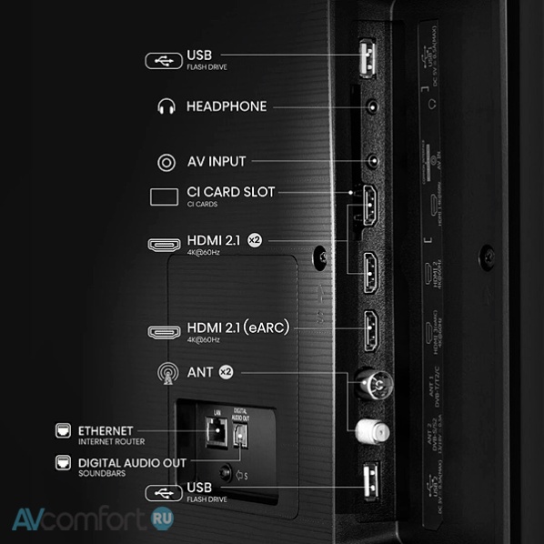 Кроме того, частота обновления сигналов 2K, как утверждается, была улучшена. Среди других особенностей - поддержка HDR10+, Dolby Vision и встроенные 30-ваттные динамики с Dolby Atmos. Вы можете изменять настройки изображение автоматически или вручную, а режимы "Спорт" и "Игра" настраивают устройство под формат, например, уменьшают задержку и сглаживают движения.