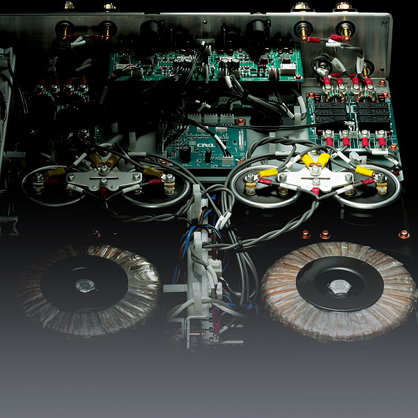 Для достижения превосходной скорости и энергии усилитель TAD-M1000 оснащён выходным каскадом класса D в сочетании со схемой питания, включающей тороидальный силовой трансформатор большой мощности (1 кВА) и специально разработанные электролитические конденсаторы. Кроме того, TAD использует мощные МОП-транзисторы с очень низким сопротивлением в открытом состоянии без подводящих проводов, что обеспечивает низкие потери и высокую скорость работы.