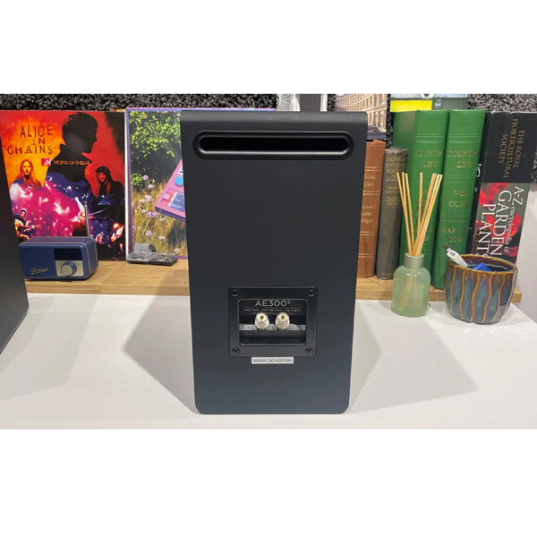 Корпус доступен в отделке под орех или в новых матовых покрытиях «silk-touch» чёрного и белого цветов. Рамки и грилли согласованы с каждой отделкой по цвету. Новые AE300² легко впишутся в любой интерьер, будь то размещение на стойках или на полке.