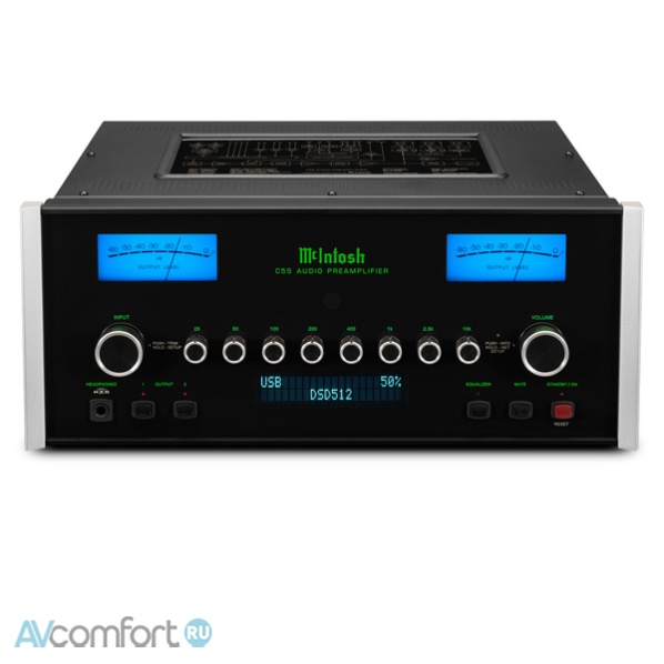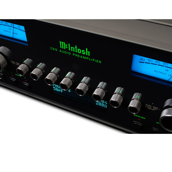 В C55 реализована функция возврата петли процессора, чего не было в предусилителях McIntosh последних поколений. Петля процессора позволяет подключать внешний процессор сигнала (например, наш эквалайзер MQ112 Environmental Equalizer или систему коррекции акустики помещения MEN220 Room Correction System), расширители динамического диапазона или другие устройства без необходимости установки между предусилителем и усилителем(ями) мощности. Обычно это удобнее и позволяет добиться более высоких характеристик.