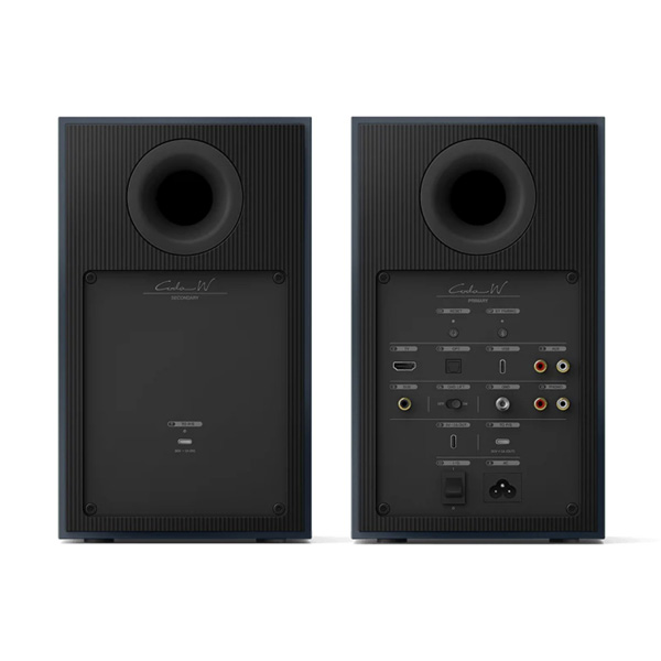 Суммарная мощность KEF Coda W составляет 200 Вт, при этом каждая колонка оснащена отдельными усилителями для высокочастотного и низкочастотного динамиков. Для пары полочников это весьма приличная мощность. Колонки имеют конструкцию с фазоинвертором на задней панели для улучшения низкочастотного диапазона. Также предусмотрен выход для подключения дополнительного сабвуфера.