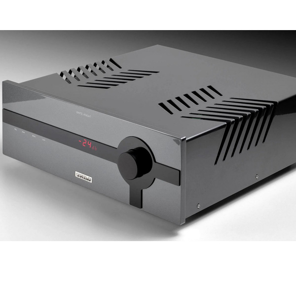 Предварительное усиление осуществляется интегральной схемой на биполярных транзисторах, с малым уровнем шумов, приятным и точным звуковым рисунком. В основе усилителя White Knight — двухтактная схема без общей отрицательной обратной связи. В рамках архитектуры двойное моно в блоке питания работают два 200-ваттных трансформатора. Резервуар энергии — 10 конденсаторов общей емкостью 22 000 мкФ.