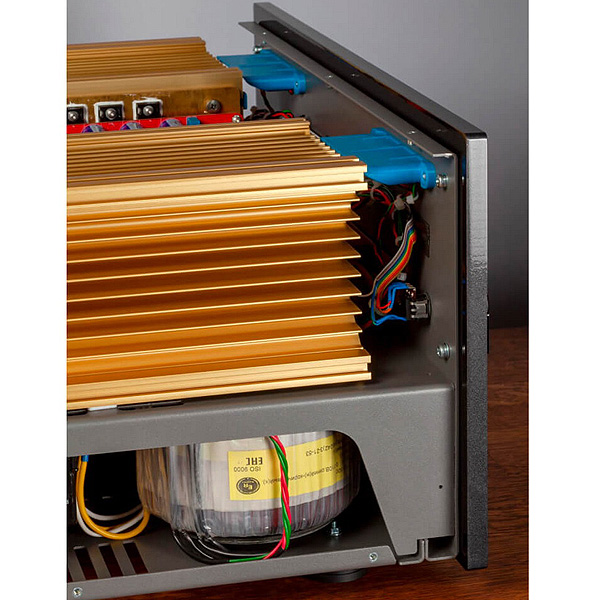 Благодаря высокому току покоя (2,5 А) значительную часть полной выходной мощности, 70/35 Вт на 8/4 Ом - Black Knight отрабатывает в чистом классе А. Стабилизированный блок питания на основе архитектуры «двойное моно» включает два силовых трансформатора мощностью по 600 Вт и конденсаторы общей емкостью 200 000 мкФ.