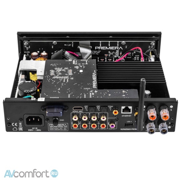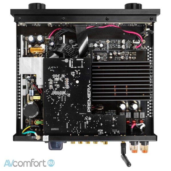 Информация взята с сайта avcomfort.ru Premiera D2S – современный интегральный Hi-Fi стереоусилитель класса D со встроенными сетевым проигрывателем, ММ фонокорректором, ЦАП, Bluetooth, HDMI ARC, Wi-Fi, AirPlay 2 и с номинальной выходной мощностью 167 Вт на канал (4 Ом) при искажениях менее 0,08%.