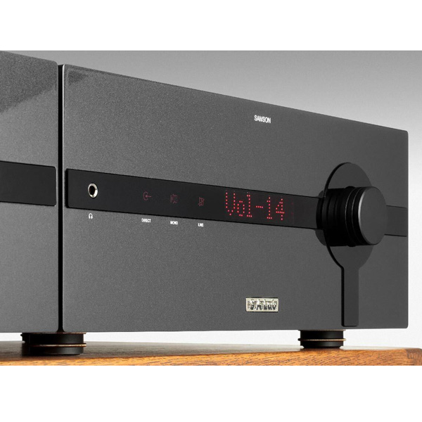 Предусилитель Samson имеет 5 линейных входов (3 небалансных RCA и 2 балансных XLR), вход Direct (XLR), а также балансные и небалансные выходы. Управление режимами Direct, Mono, Line (Mute) и питанием осуществляется посредством удобных сенсорных кнопок. На блоке питания имеется индикатор времени наработки (в часах)...