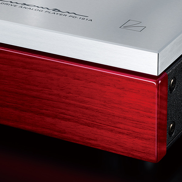 Мы очень внимательно относимся к выбору и отделке внешних и структурных материалов, из которых состоит готовый продукт, поскольку считаем, что управление аналоговым проигрывателем должно быть приятным как на ощупь, так и визуально. PD-191A – настоящее пиршество для глаз, элегантный и изысканный проигрыватель с передней панелью из массива натурального дерева, окрашенной под палисандровое дерево, с красивой глянцевой отделкой, контрастирующей с верхней панелью из алюминия с тонкой шлифовкой. Кроме того, сместив крепление двигателя внутрь нижнего шасси, мы добились стильной формы с низким центром тяжести, которая на 12 мм ниже, чем у предыдущей модели PD-171A.