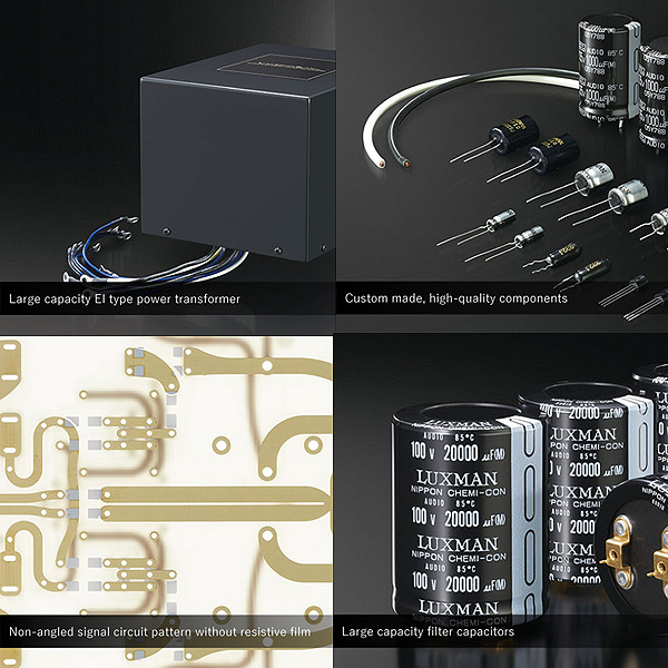 Оснащенная новыми независимыми фильтрующими конденсаторами LUXMAN ёмкостью 20 000 мкФ x 4, традиционная высокостабильная конфигурация блока питания LUXMAN сочетает в себе фильтрующие конденсаторы большой ёмкости и мощный силовой трансформатор. Эффективное отслеживание нагрузки M-10X поддерживается передачей сигнала с низким импедансом, реле громкоговорителей с малым сопротивлением и большой ёмкостью с 4 параллельно соединёнными контактами и прямым подключением к шине для клемм громкоговорителей.