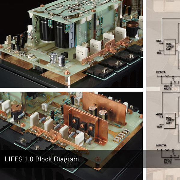 Конструкция была разработана и расширена с самых первых принципов с использованием технологий моделирования и кропотливых исследований. Благодаря многократным прослушиваниям, тщательному анализу и комбинированию специально подобранных компонентов мы добились высочайших эксплуатационных характеристик и уровня качества, подходящего для использования в продуктах LUXMAN следующего поколения. Это рождение эпохального механизма обратной связи LIFES версии 1.0, который играет ключевую роль в будущих усилителях, начиная с M-10X, и вдыхает новую жизнь в музыку.