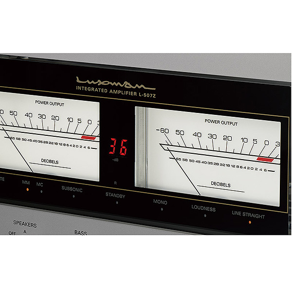 Стрелочные аналоговые индикаторы уровня VU являются символом дизайна твердотельных интегральных усилителей Luxman. L-507Z оснащён большим двойным индикатором с яркой светодиодной подсветкой и высокой чувствительностью. Мы использовали такой дисплей, чтобы движение стрелок синхронизировалось с динамикой вашей музыки. Кроме того, новые 7-сегментные светодиодные индикаторы отображают уровень затухания между левым и правым индикаторами уровня, что позволяет легко контролировать текущее значение затухания с места прослушивания. Подсветку индикатора уровня и светодиодный дисплей можно включать и выключать с помощью пульта дистанционного управления.