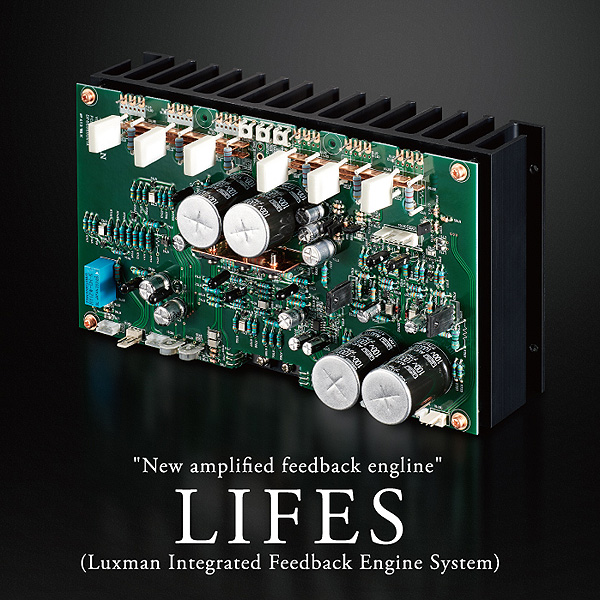 Благодаря многократным прослушиваниям, тщательному анализу и комбинированию специально отобранных компонентов мы достигли высочайших эксплуатационных характеристик и уровня качества, подходящего для использования в продуктах Luxman следующего поколения. При создании LIFES версии 1.0, тщательно переосмыслив всю схему, нам удалось сократить количество параллельно включенных элементов и одновременно улучшить характеристики. Искажения в каскаде усиления были снижены более чем вдвое по сравнению с нашей предыдущей системой. Выходной каскад построен по трёхкаскадной схеме Дарлингтона с тройным параллельным включением и двухтактным включением, обеспечивая выходную мощность в классе AB: 110 Вт + 110 Вт (8 Ом) и 210 Вт + 210 Вт (4 Ом). Высокая выходная мощность, сравнимая с выходной мощностью отдельного усилителя мощности, позволяет без труда создать естественную, энергичную звуковую сцену, уверенно раскачивая любую совместимую акустическую систему и раскрывая её наилучшие характеристики.
