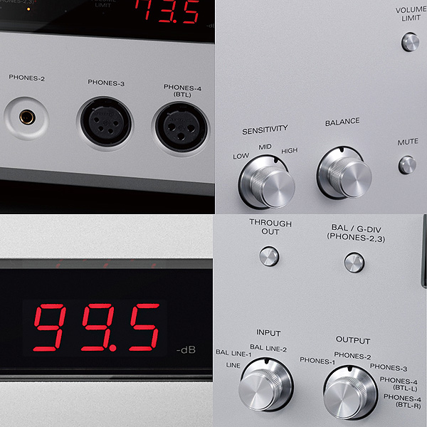 Система LECUA-EX объединяет все функции, связанные с регулировкой громкости, включая трёхступенчатое переключение чувствительности в зависимости от импеданса и эффективности наушников слушателя, регулировку баланса левого и правого каналов и шестиступенчатый ограничитель громкости для защиты как ваших ушей, так и наушников от неожиданных скачков громкости. Большой трёхзначный семисегментный светодиодный дисплей наглядно отображает уровень громкости, что упрощает поддержание постоянной настройки громкости во время точного прослушивания.