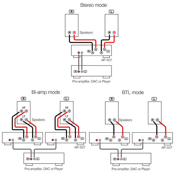 Режимы стерео, двухполосного усиления и BTL обеспечивают широкий выбор настроек