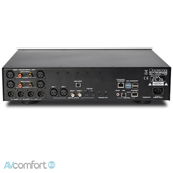 Bryston BR-20 объединяет лучшую в истории архитектуру балансного аналогового предусилителя с цифро-аналоговым преобразователем (ЦАП) и встроенным потоковым вещанием, заимствованным из популярной серии BDP. BR-20 это непревзойденный аудиофильский центр, включающий функции и возможности подключения, отвечающие требованиям современного аудиофила. От лучшего в истории встроенного усилителя для наушников до опциональных входов фонокорректора для коллекционеров винила и входов 4K HDMI для воспроизведения DSD и подключения видео источников и ТВ,
