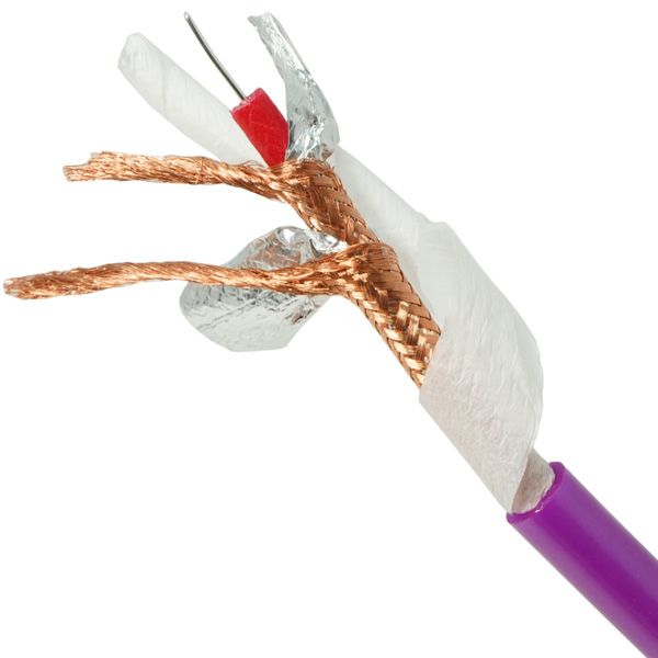 - Четырехслойное экранирование: два слоя алюминиево-майларовой фольги, два слоя оплетки из UP-OFC