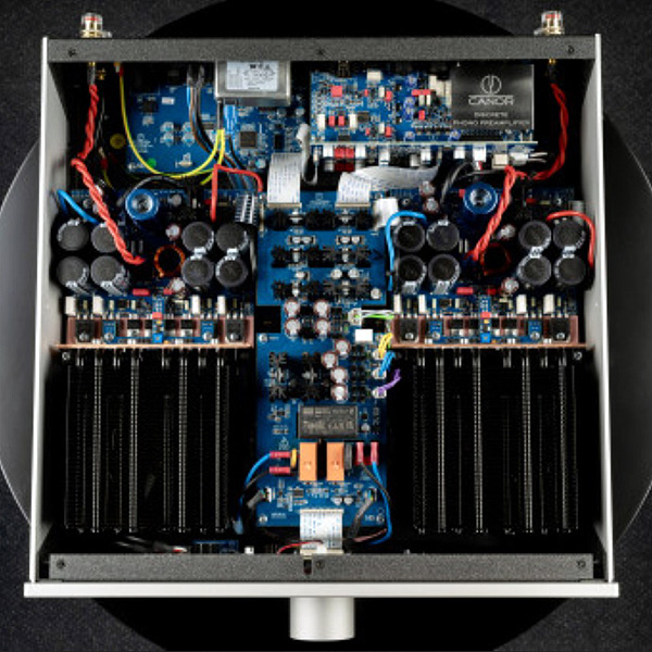 Усилитель мощности мощностью более 100 Вт имеет ламповый балансный дифференциальный входной каскад и дифференциальные цепи обратной связи, за которыми следует выходной каскад класса A с токовым демпфированием, где маломощный усилитель класса A всегда контролирует нагрузку динамика, а мощный каскад класса AB обеспечивает больший ток нагрузки. Уникальная топология сброса тока гарантирует, что маломощный сверхлинейный каскад класса А всегда контролирует нагрузку динамиков за счет мощного «силового» воздействия каскада класса AB – этот каскад класса AB эффективно изолирует «чувствительный» каскад класса А от «сложных» токов нагрузки динамиков. Эта топология обеспечивает отсутствие перехода между режимами работы класса А и AB, что приводит к преимуществам превосходного качества звука класса А и линейности сигнала класса А при более низком энергопотреблении класса AB.