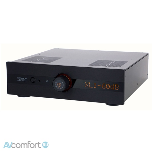 Virtus A3 имеет полностью балансный симметричный сигнальный тракт, реализованный на дискретных схемах, без использования интегрированных микросхемных оптических усилителей в прямом сигнальном тракте. Выбор входа обеспечивается высококачественными реле, которые симметрично подают сигнал на дискретные буферы класса А на полевых транзисторах с нулевой обратной связью. Выход этих буферов управляет дифференциальным аналоговым ступенчатым аттенюатором для точного согласования каналов и высочайшего качества звука. Выход этого дифференциального ступенчатого аттенюатора затем подается на каскад усилителя мощности.