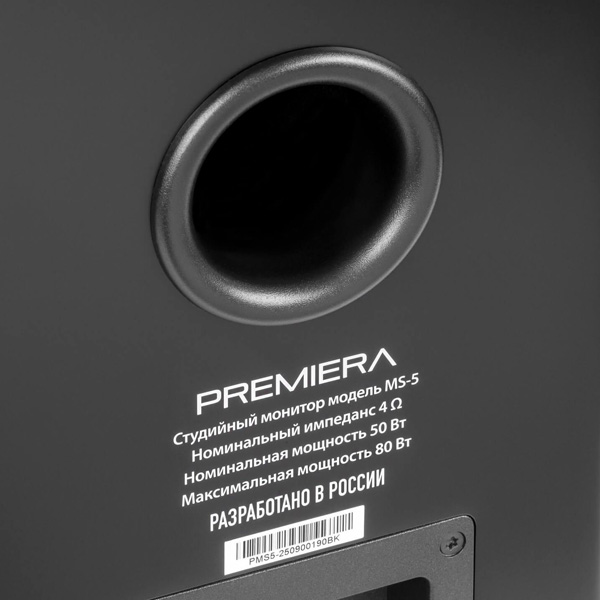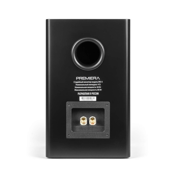 Информация взята с сайта avcomfort.ru Premiera MS-5 «Studio 5» - двухполосные полочные профессиональные акустические системы с номинальной мощностью RMS 50 Вт. В акустических системах MS-5 установлены два излучателя: дюймовый твитер с шелковым куполом и вуфер диаметром 5.25 дюйма с диффузором из полипропилена. Используется разделительный фильтры 18 дБ/октава по НЧ и 12 дБ/ октава по ВЧ. Нормируемый частотный диапазон при неравномерности ±3 дБ составляет 44 Гц — 20 кГц.