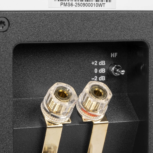 Корпус акустических систем изготовлен из панелей HDF и отделан лаком. Динамики защищены тканевой решеткой в цвет корпуса на магнитных креплениях. На задней панели расположены порт фазоинвертора и две пары винтовых клемм для подключения усилителя как и обычном, так и в би-вайринговом (bi-wiring) вариантах. Акустические системы MS-6 предлагаются в двух цветах отделки – черном и белом.