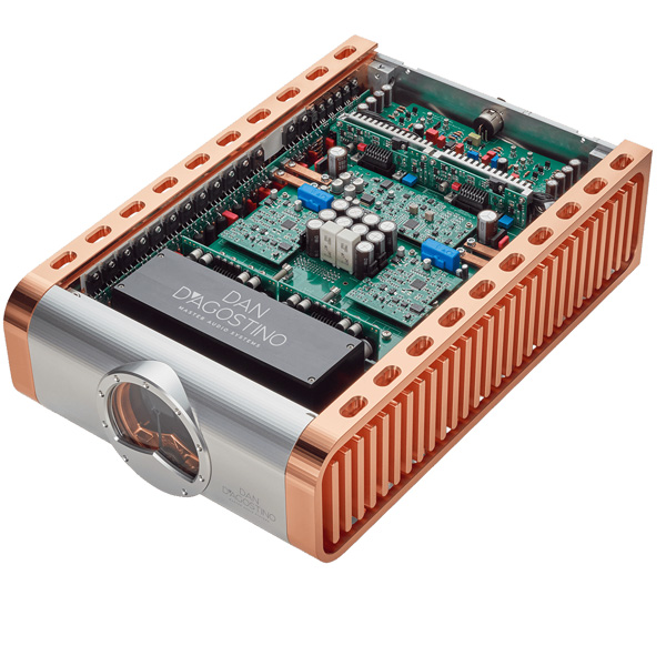 Отличительной чертой усилителей Dan D’Agostino Master Audio Momentum является использование цельных медных радиаторов, выбор которых обусловлен как инженерными характеристиками, так и визуальным эффектом. Обладая почти вдвое большей теплопроводностью, чем алюминий, медь отводит тепло от выходных транзисторов быстрее и равномернее. Сразу бросается в глаза новая, усовершенствованная конструкция медного радиатора, изготовленного на 5-осевом станке, каждый из которых сформирован из цельного куска медной заготовки весом 19 кг (42 фунта).