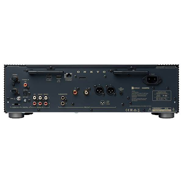 Так как Onkyo ориентируется на требовательных энтузиастов, P-80 оснащён системой Dirac Live® Room Correction для точной калибровки звука в помещении. Коррекция частотной характеристики и поддержка Dirac Live Bass Control (дополнительное опция ПО) позволяют довести звучание до идеала. Два независимых выхода для сабвуфера позволяют полностью использовать возможности технологии DLBC (Dirac Live Bass Control).