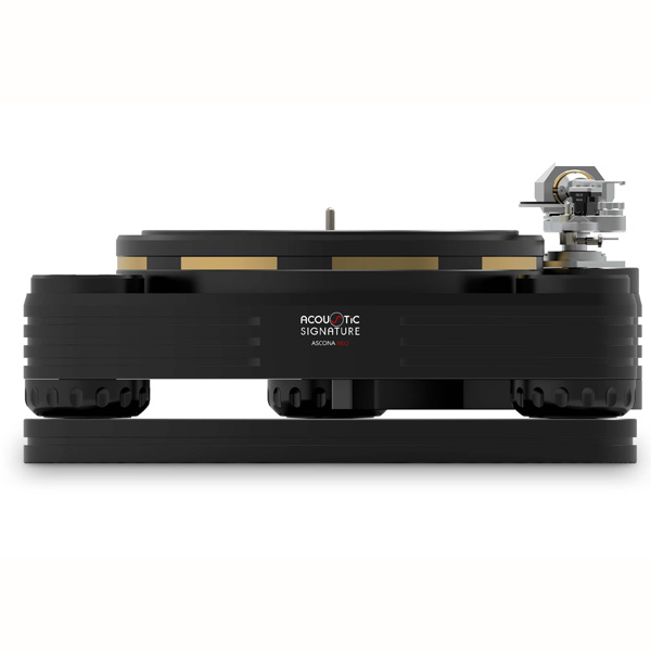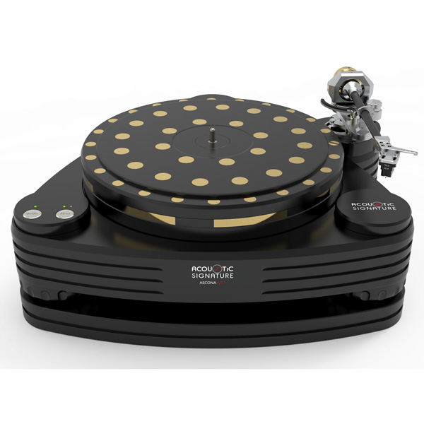 В стандартной комплектации в Ascona применен алюминиевый диск толщиной 50 мм и весом 19 кг, в котором установлены два вида виброгасителей: 24 латунных цилиндра большого диаметра ближе к центру вращения и 32 таких же цилиндра меньшего диаметра ближе к внешнему периметру диска. Такой диск лишен собственных резонансов плюс эффективно подавляет любые вибрации, как исходящие от движущихся деталей в самом проигрывателе, так и передающихся акустическим путем. За счет идеальной балансировки массы достигается исключительная стабильность вращения диска.