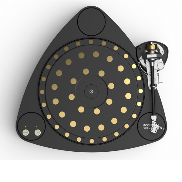 Виброгасители в опорном диске (Silencer Technology). Еще в 2000 году Acoustic Signature изобрела и внедрила новую систему гашения вибраций главного (на который кладется пластинка) диска проигрывателя. Система вставок (виброглушителей) действует просто и чрезвычайно эффективно.