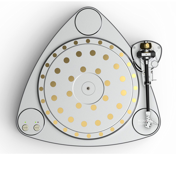 Виброгасители в опорном диске (Silencer Technology). Еще в 2000 году Acoustic Signature изобрела и внедрила новую систему гашения вибраций главного (на который кладется пластинка) диска проигрывателя. Система вставок (виброглушителей) действует просто и чрезвычайно эффективно.