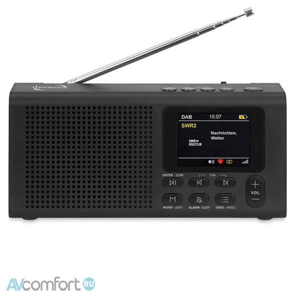 Информация взята с сайта avcomfort.ru Благодаря широкому выбору программ DAB+ вы можете наслаждаться любимыми станциями как дома, так и в дороге. Встроенное FM-радио, подключение по Bluetooth, две настройки будильника, 3,5-мм разъем для наушников и 2,4-дюймовый цветной TFT-дисплей дополняют комплектацию.