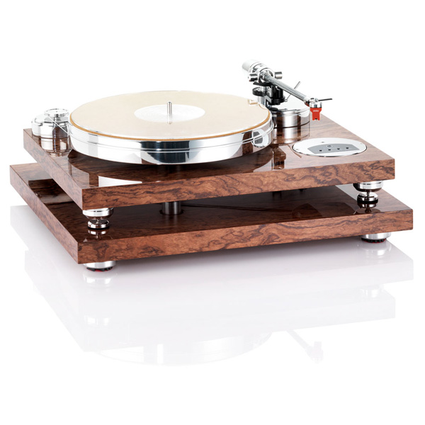 Модель, которую вы видите на фото, эксклюзивная, созданная немецкими конструкторами для любителей винила с особыми запросами. В этом контексте отметим две особенности: чрезвычайно толстый плинт, набранный из многослойной фанеры, и внешнюю отделку, предусматривающую несколько цветовых вариантов. В нашем случае это классический British Racing Green....
