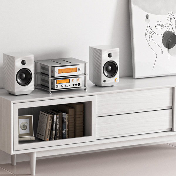 FiiO SP5 оснащена системой двойного питания — редкость для настольных акустических систем. Каждая колонка получает свой собственный, а не общий, источник питания мощностью 120 Вт, что помогает устранить межканальные помехи и обеспечивает стабильную подачу энергии. Каждый динамик обслуживается собственным усилителем – 60 Вт выделяется на НЧ/СЧ-динамик с диффузором диаметром 5,25 дюймов, выполненном из материала Rohacell, и 20 Вт – на 1-дюймовый купольный твитер из шёлкового композита.