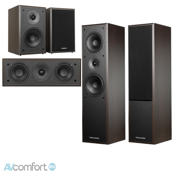 Информация взята с сайта avcomfort.ru Комплекты акустических систем Premiera со строгой и стильной внешностью, превосходным звуком и, главное, с ценой, которую вряд ли предложат ближайшие конкуренты. Акустические системы комплектуются съемными резиновыми ножками (в качестве опции возможна установка металлических шипов) и предлагаются в цветах отделки – черном или мокко...