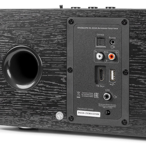 ES-422A имеет встроенный цифровой процессор DSP и оснащена приемником Bluetooth, входом HDMI ARC, USB-A, оптическим и аналоговым входами, что позволяет использовать ее с различными источниками входного сигнала.