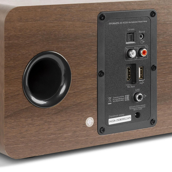 ES-422A имеет встроенный цифровой процессор DSP и оснащена приемником Bluetooth, входом HDMI ARC, USB-A, оптическим и аналоговым входами, что позволяет использовать ее с различными источниками входного сигнала.