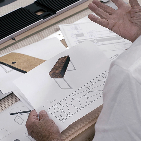 Ruark R810 MiE демонстрирует многовековое искусство маркетри. Узоры разработаны таким образом, чтобы отражать современную жизнь, одновременно отдавая дань уважения традиционным ремесленным техникам. Маркетри требует точности и терпения. Отобранные шпоны тщательно вырезаются и располагаются перед тем, как приклеить их к корпусу. Планирование имеет решающее значение для обеспечения идеального выравнивания и подгонки всех сложных деталей.