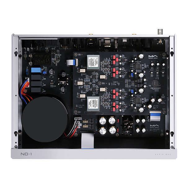 Matrix Audio ND-1 использует флагманскую комбинацию чипсетов AKM: высококачественный дельта-сигма модулятор AK4191EQ в паре с двумя высококачественными ЦАП AK4499EX. В то время как AK4191EQ отвечает за высокоточную цифровую обработку и синхронизацию, два чипа AK4499EX используют независимую канальную архитектуру, предназначенную для цифро-аналогового преобразования левого и правого каналов. Эта архитектура массива «1+2» эффективно подавляет джиттер, оптимизирует разделение каналов и фазовую согласованность, а также обеспечивает исключительное соотношение сигнал/шум и динамический диапазон.