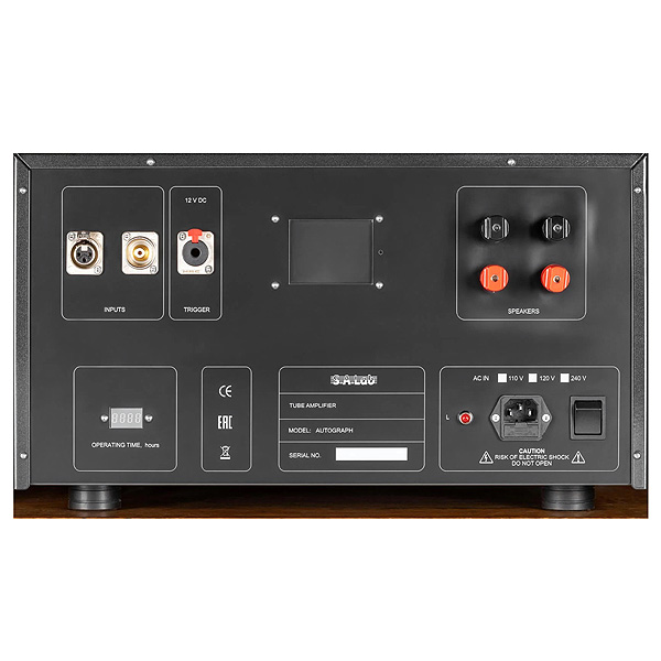 Ультралинейный выходной каскад усилителя Autograph на четырёх генераторных пентодах ГУ-50 обеспечивает выходную мощность почти 200 Вт на 4 Ома, что позволяет не беспокоиться о чувствительности колонок. Для поддержания низких уровней искажений на протяжении всего срока эксплуатации усилителя режимы работы ламп контролируются и оперативно корректируются процессором.